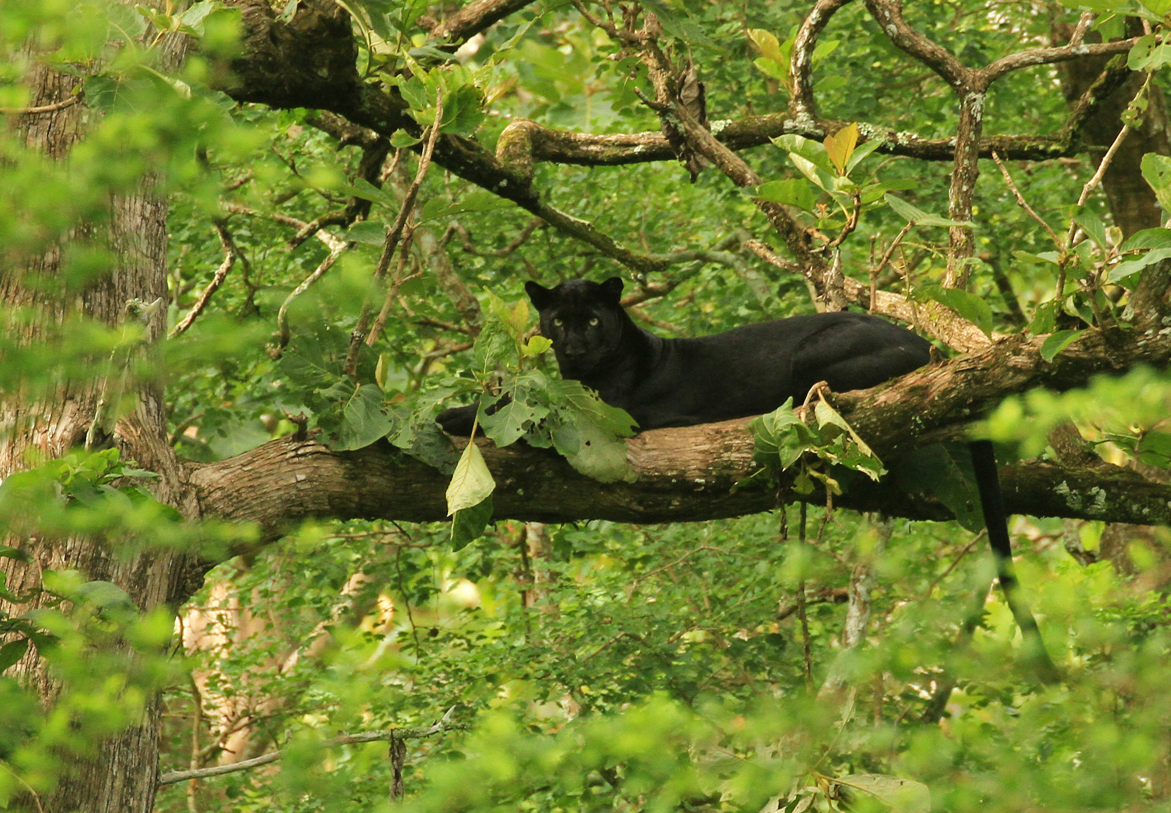 Kabini’s claim to fame rests not only on its thriving tiger population but on a creature rarer still – the Melanistic Leopard, known to locals as Saaya – the shadow. Sleek, elusive, and almost mythical, this black panther moves through fig trees and moonlit clearings, its dark coat absorbing light and legend alike. Few forests in the world offer a chance to see one, and fewer still hold it within such living abundance. The forest teems with life. Elephants dominate the landscape, their herds gathering in the hundreds along the backwaters during summer – one of the largest elephant congregations on Earth. Dholes hunt in coordinated packs, leopards rest in the high branches, and gaur, sambar, and deer graze quietly below. The air is alive with birds – bar-headed geese, hornbills, ospreys, and the magnificent white-bellied woodpecker, whose rhythmic tapping echoes through teak groves. Smooth-coated otters play along the water’s edge, while flying squirrels glide soundlessly under the canopy’s shade.